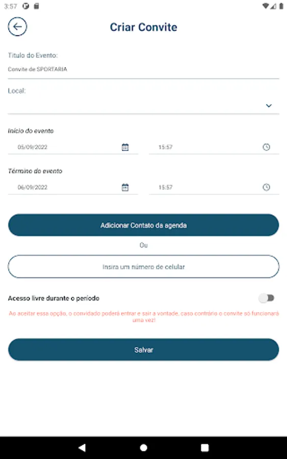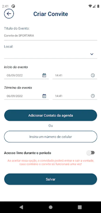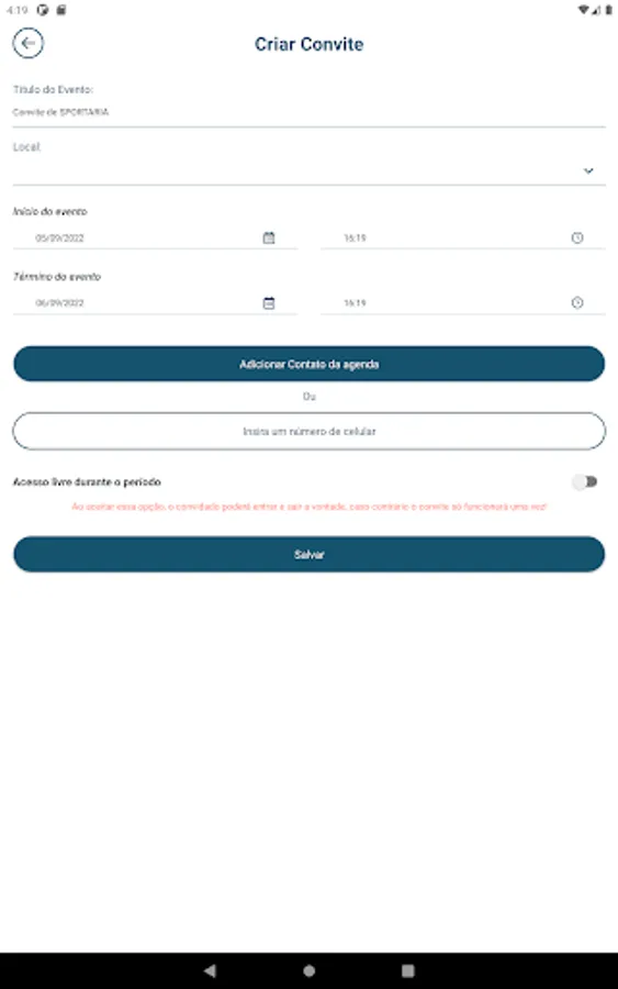 Organize and manage invitations to your events or parties, sending QR Code invitations at once to your guests, allowing access to areas reserved for the event.