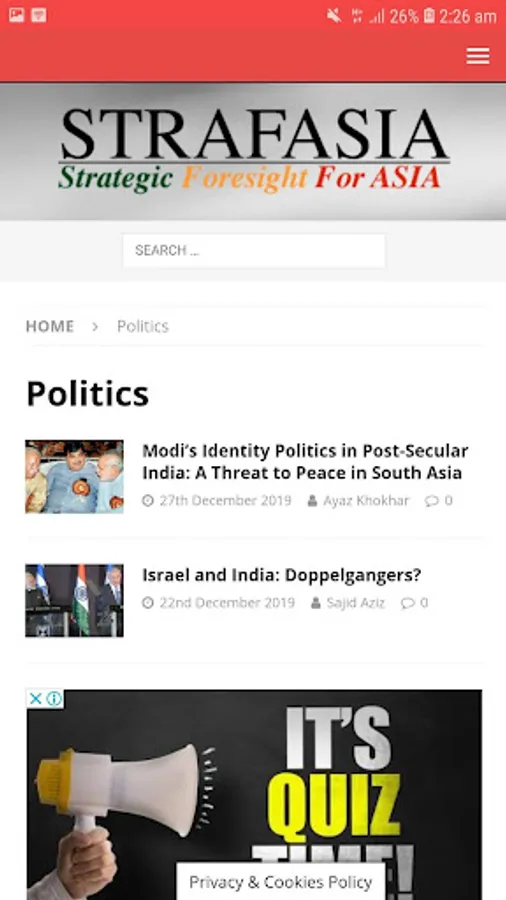 STRAFASIA is a platform based in London U.K. for objective analysis and commentary on issues related to the 21st century emerging Asia. It features short articles, opinions and academic papers, to help improve the understanding of the new Asian century from a regional perspective. Contributions from renowned academics, scholars, and other opinion makers who have the first-hand experience of working in the government and military make STRAFASIA a unique platform for the emerging scholars as well as dedicated researchers interested in understanding the region.