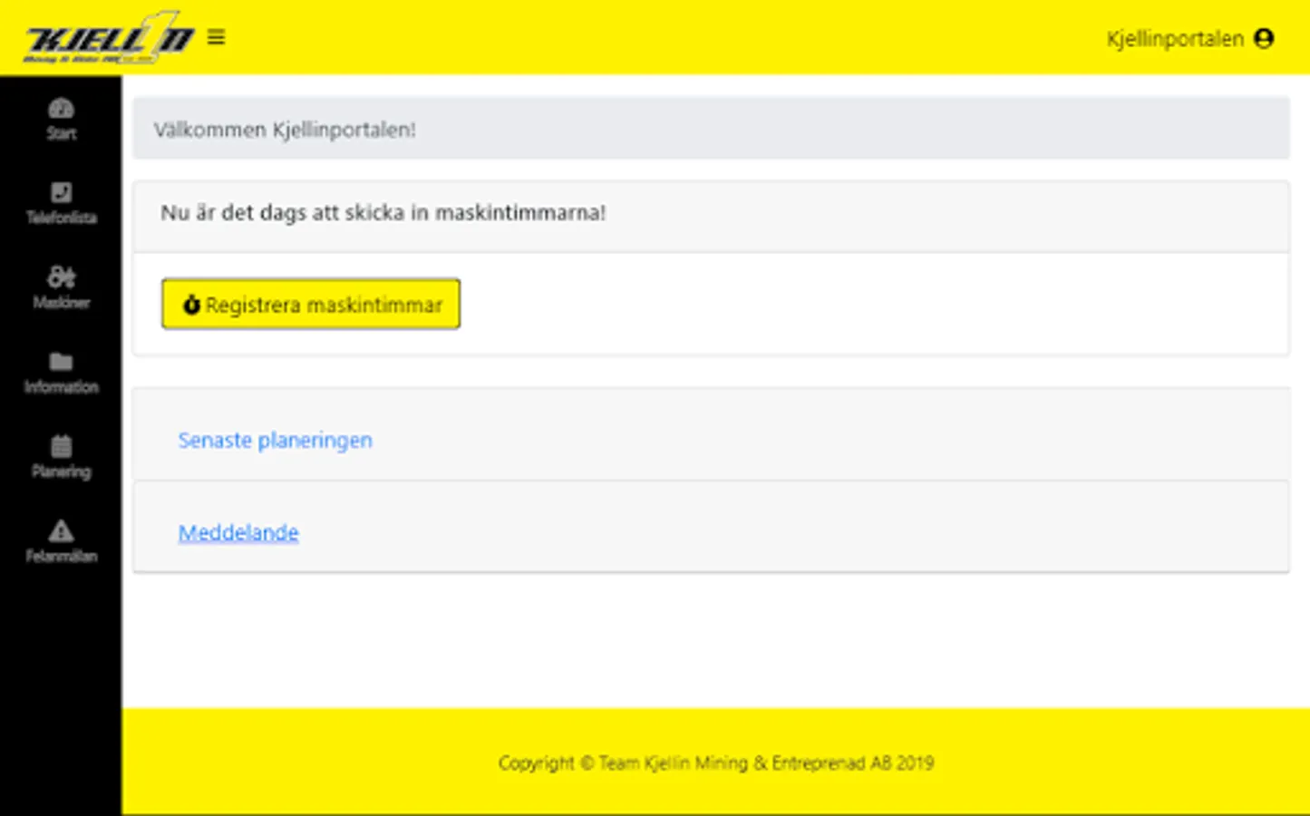 Team Kjellin Mining & Entreprenad AB believes in a digital future and we always want to be one step ahead, which is why we have developed this app that will ensure that the right information is communicated in a simple way to both customers and employees.