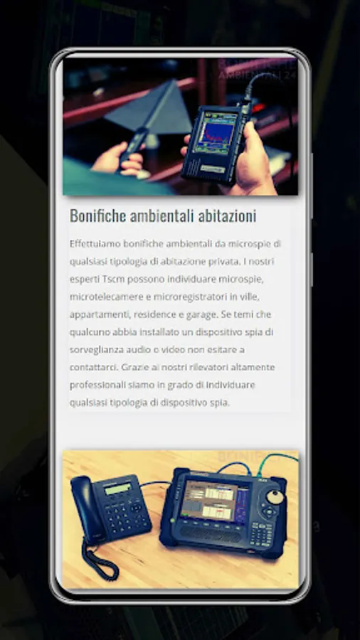 Relying on us means relying on an Investigation Agency Legally Authorized by the Prefecture, a guarantee of certain and safe results. Our technicians are highly qualified and professional Tscm (technical surveillance counter-measures) experts who successfully carry out environmental remediation from bugs of any environment or vehicle.