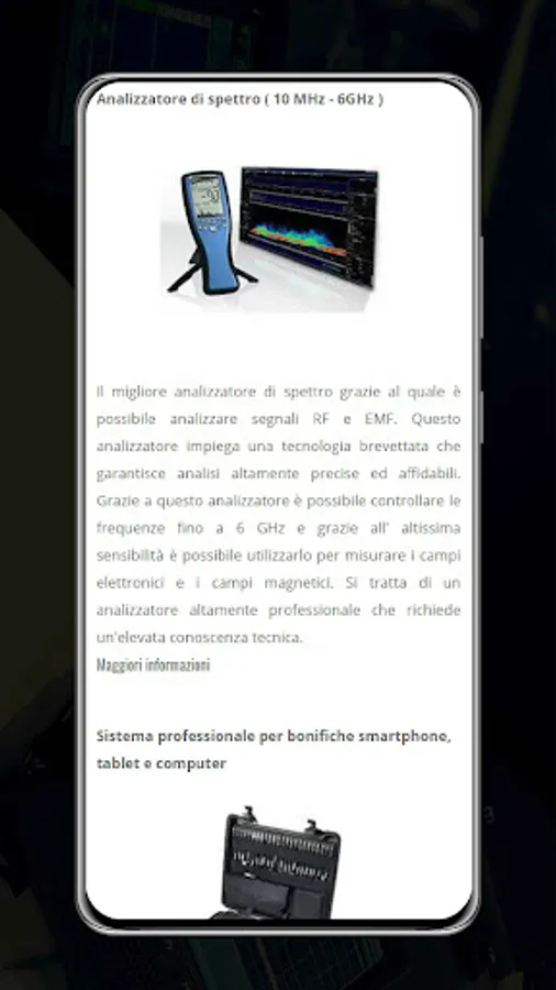 To carry out an environmental remediation it is first of all necessary to analyze the spectrum of each signal that radiates the room undergoing remediation. In this way it is possible to identify any type of spy transmission, both analogue and digital. The aforementioned analyzes are carried out with highly professional detection devices thanks to which it is possible to identify any type of spy device. Subsequently, the electrical network is scanned in search of interception spy devices powered directly by the electrical system of the environment and the telephone network is scanned to ascertain the presence of any communication interception devices. Finally, our technicians carry out a thorough inspection of the environment, a visual and structural check and a thermal analysis with the help of professional thermal imaging cameras.