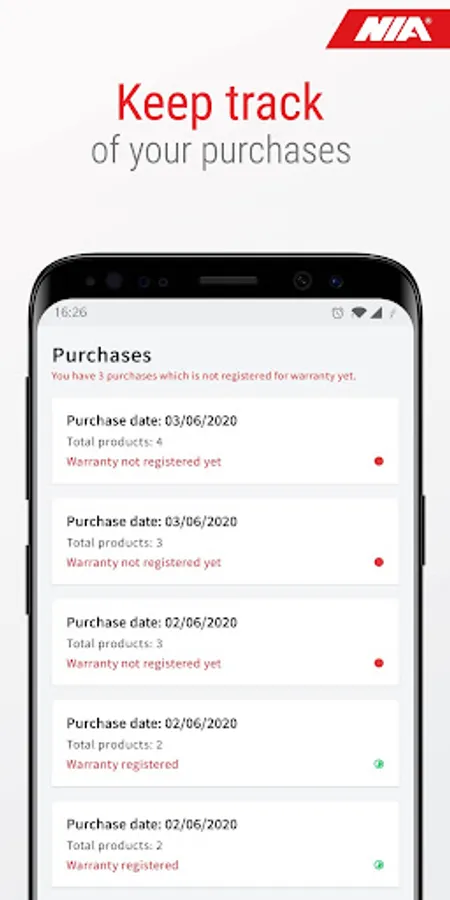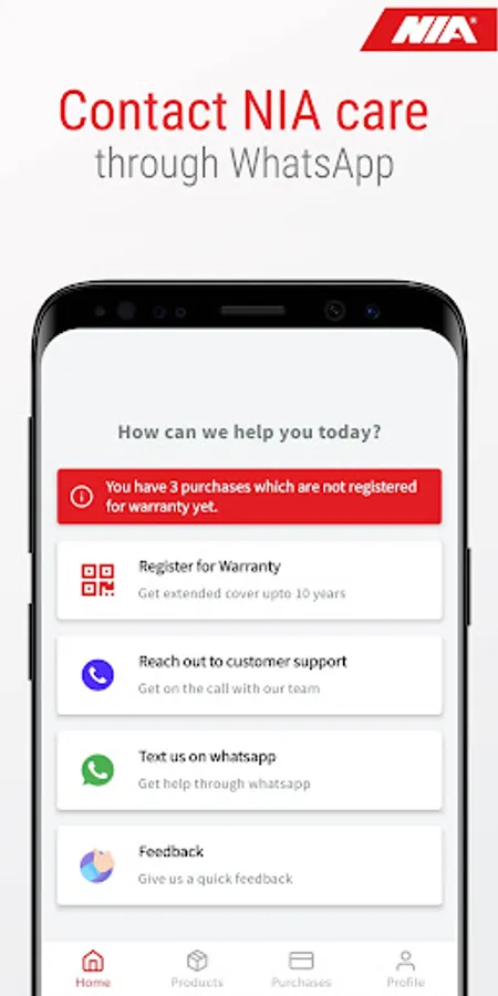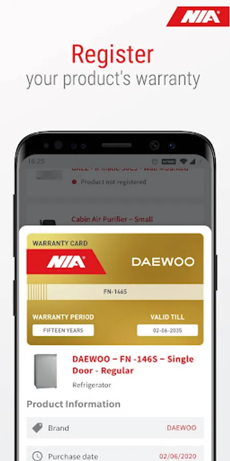 Anytime and anywhere. With the NIA app on your smartphone, you can view information on your purchased products, extend your warranty up to 10 years, and request for support. All at your fingertips.