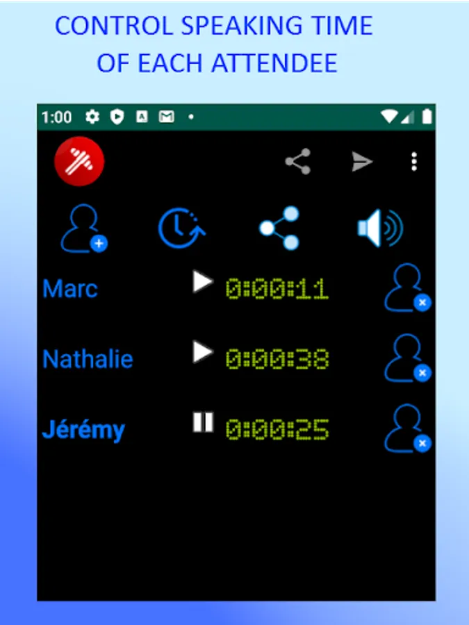 It is also possible to configure a maximum speaking time per participant, and possibly an audible alert when the individual limit is reached.