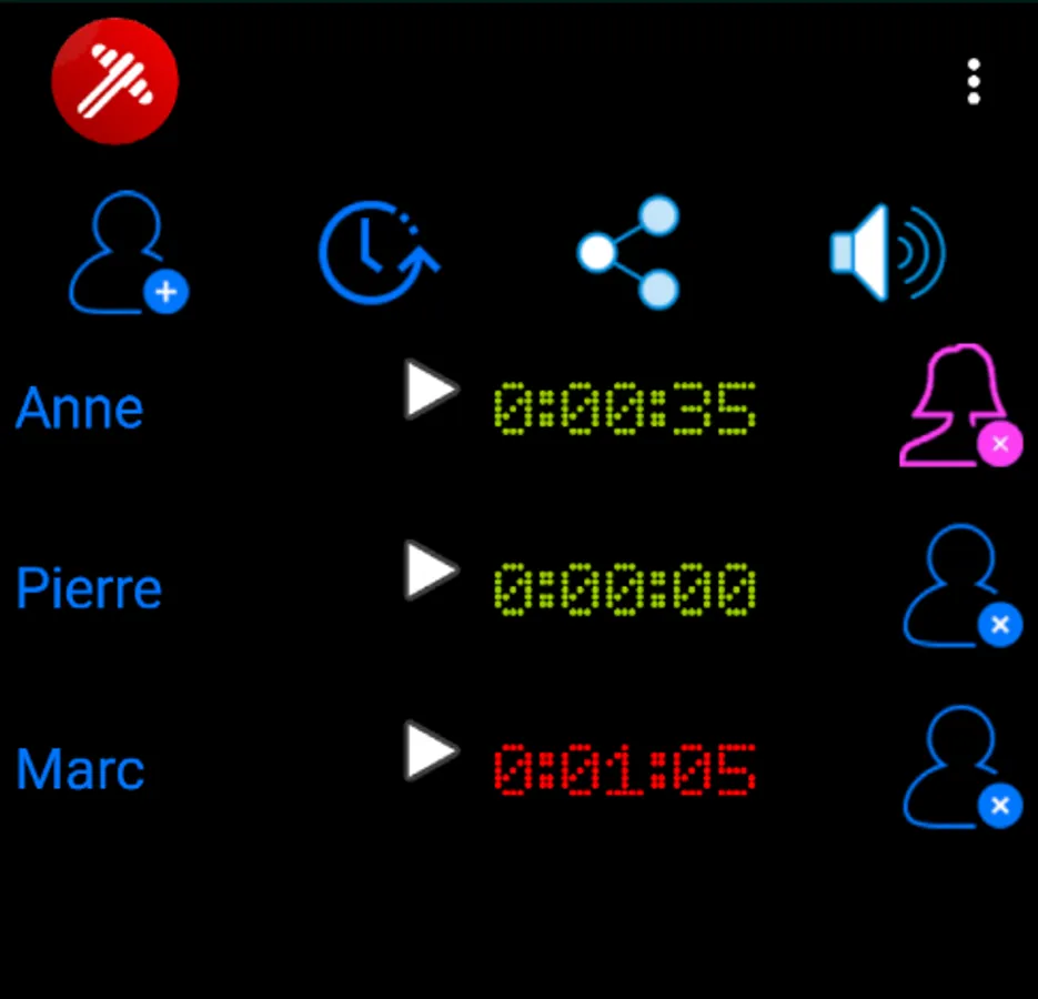 Select the speaking participant, which automatically stops the counting of the previous speaker. It is also possible to configure the possibility of having several participants speaking at the same time.