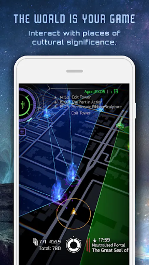 Explore the world around you and interact with places of cultural significance—such as public art installations, landmarks, and monuments—to collect valuable resources using your Ingress Scanner.