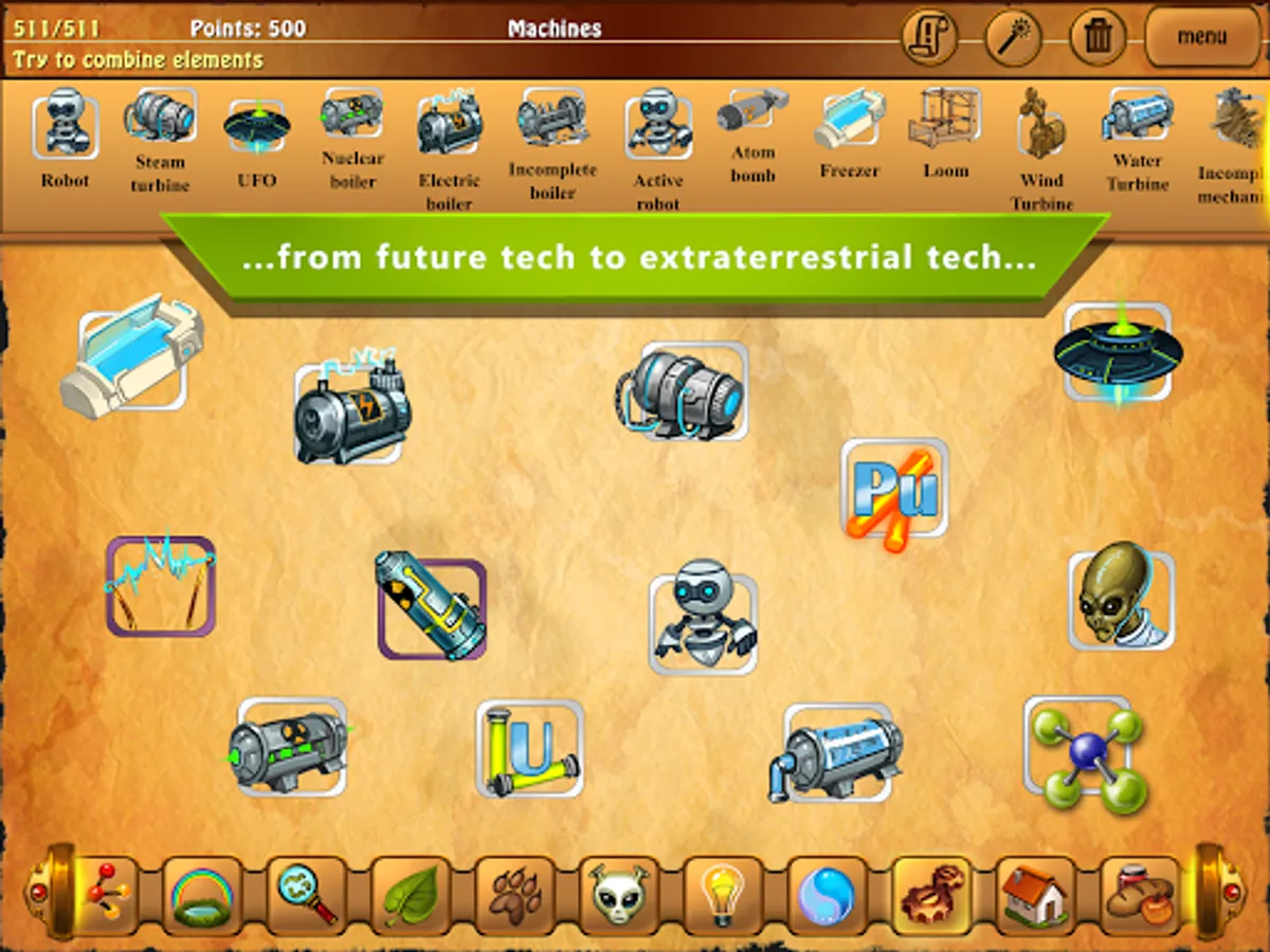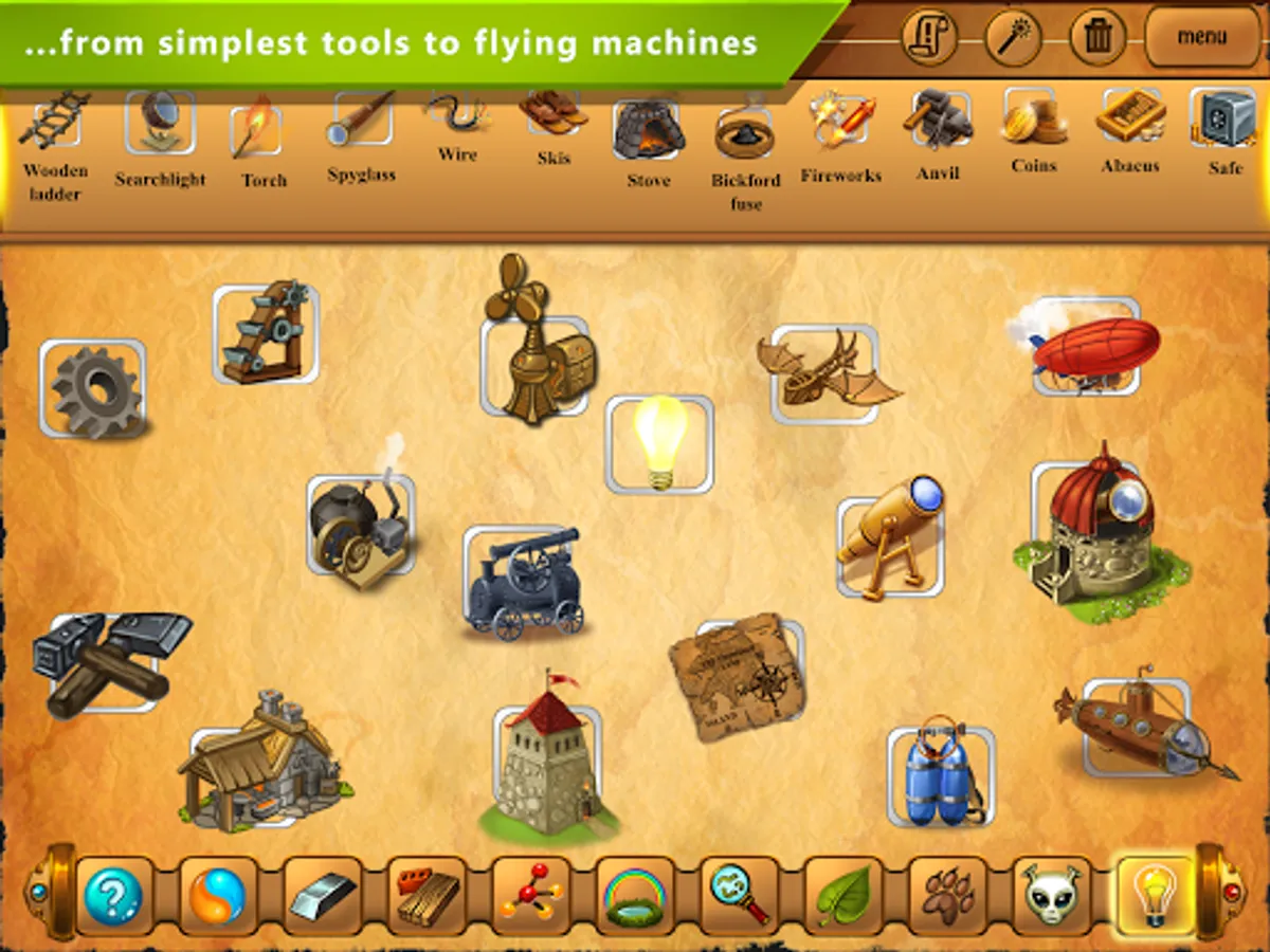 Throughout history, humans have always been eager to explore the world they inhabit. Human efforts resulted in significant progress, from the simplest of tools to high-tech industrial plants and flying machines. If you think about it, however, some time ago there was nothing but the basic elements of nature: fire, water, earth, and air. These very things form the basis of all diversity. It sounds incredible, doesn't it? Can you throw a bunch of dirt into air and get a hot air balloon? Of course not. And yet, these elements of nature are at the heart of nearly all objects, from an hourglass to a complex engineering facility. As a player, we offer you a different kind of game, a puzzle in that allows you to explore and build your own surroundings. You will uncover many secrets that concern the true nature of all things. Alchemy Classic gives players a unique chance to become a real explorer and creator!