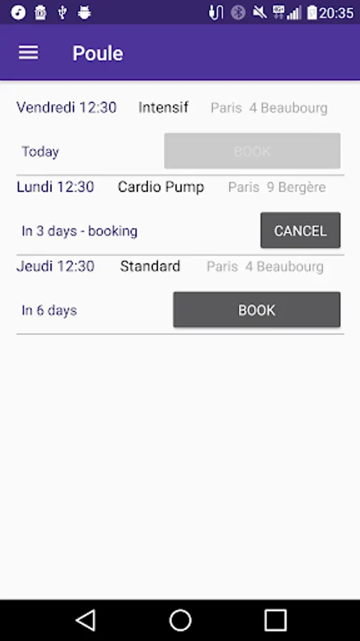- Poule don't let you book activities for the current day : use the official apps for this use case.