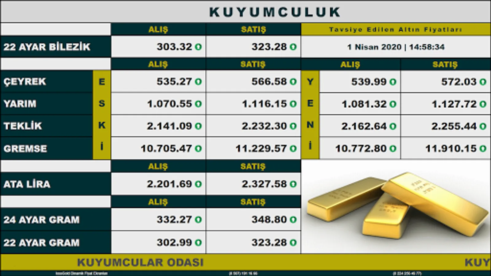 Iossgold Dynamic Price Display and Notification Screen for Jewelers. It shows gold, consumption, foreign currency and valuable commodity prices in real time for the region. Instantly special zone prices are displayed in jewelery stores, providing price information to both jewelery staff and customers.