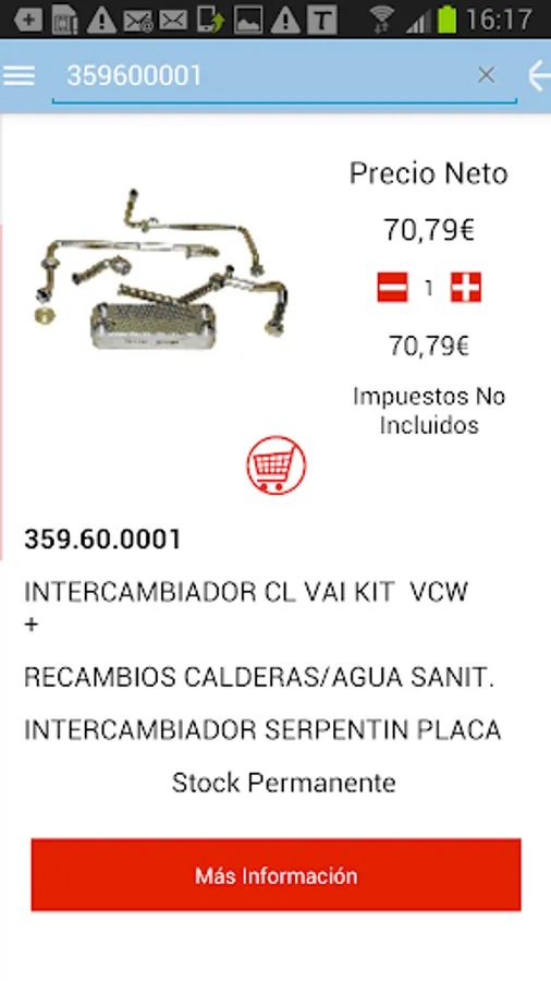 Searches for product, through the designation, technical description, original code, manufacturer or any other characteristic.