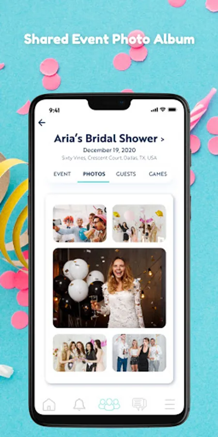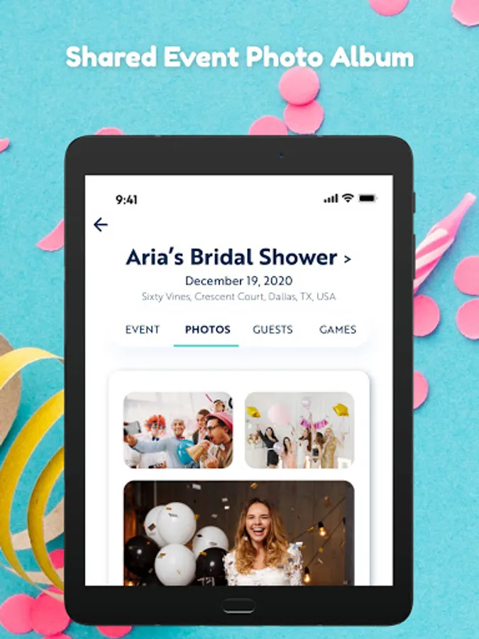 On the day and time of the event, guests can join the event on the app, play the games you created, send messages to other guests, including sharing photos and videos. The event host can also send notifications to guests at the event. If guests try to join early, they will receive the option to add the event to their calendar and get a reminder at the time of the event.
