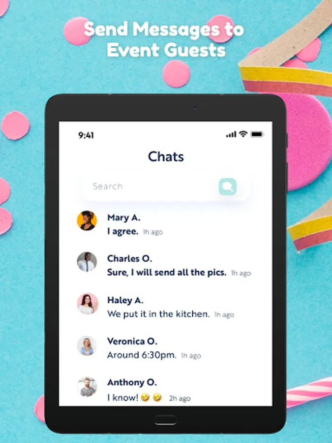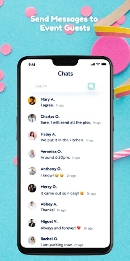 Take your event to the next level and help your guests connect with each other. Using our app, guests can send private messages to old friends and make new ones. Of course, as a host, you can always disable this feature. Guests also can block unwanted messages or turn off private messages altogether.