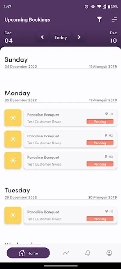 - venue reservations,