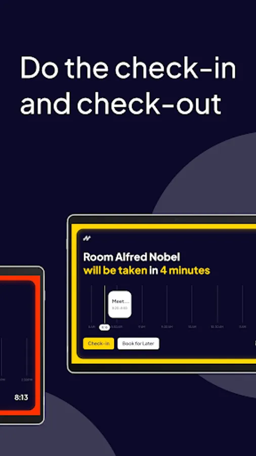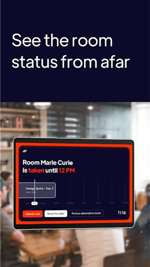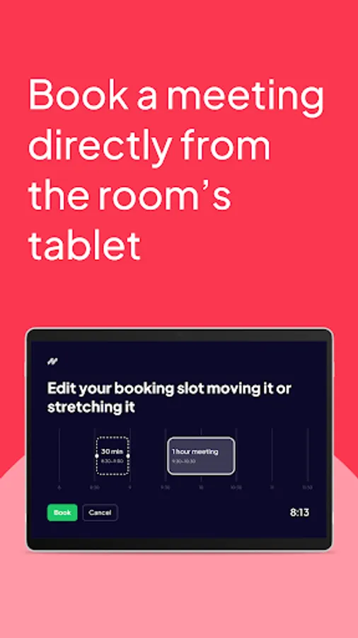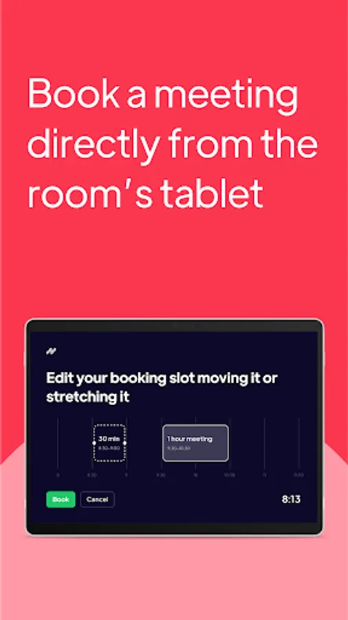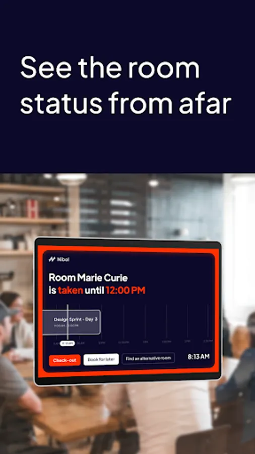 Nibol Rooms allows you to optimize booking of meeting rooms in your office, giving employees the ability to view a room's availability in real time and book a meeting directly from the associated tablet.