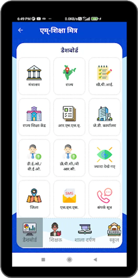 It facilitate mobile based services to Teachers, Students, Parents, School, Block, District and State level administrators.