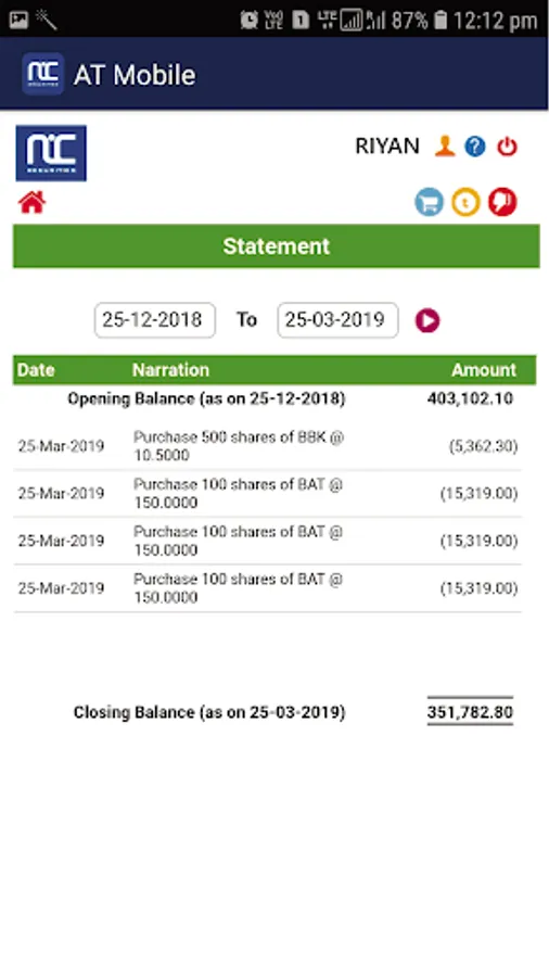• Real time access to various reports such as portfolio valuations, transaction statements and stock holding reports
