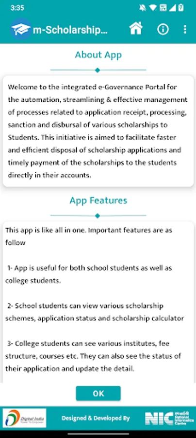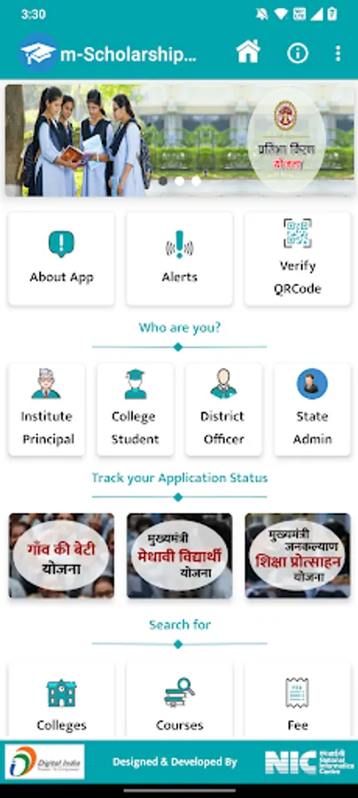 This app aims to provide an integrated platform to support the implementation of the Scholarship schemes for both School and College students.