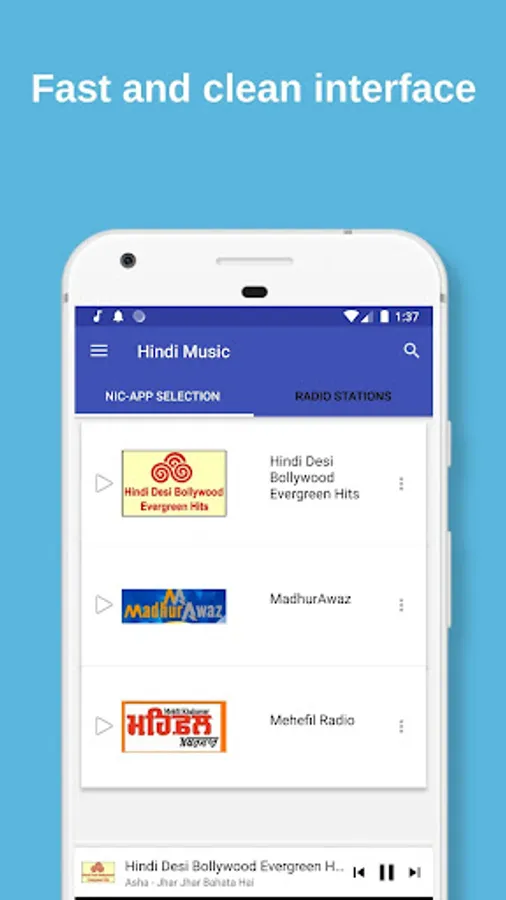 You have access to all these radios for free. This is the simplest, fastest and most clear way to listen to Hindi Music.