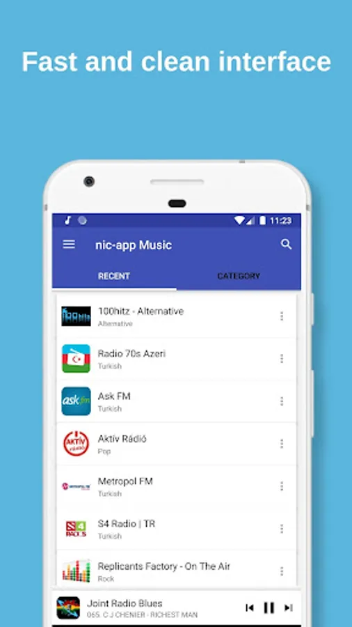 This is a free music app. Has a list updated constantly of radios stations. This radio app is a free music player and free music app.