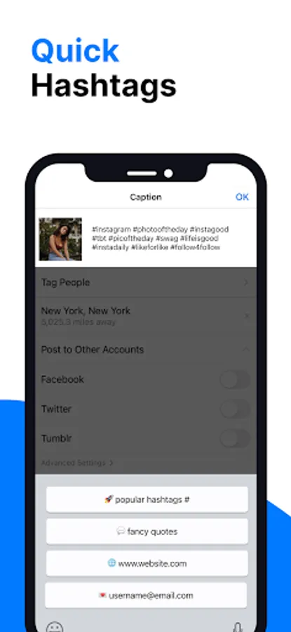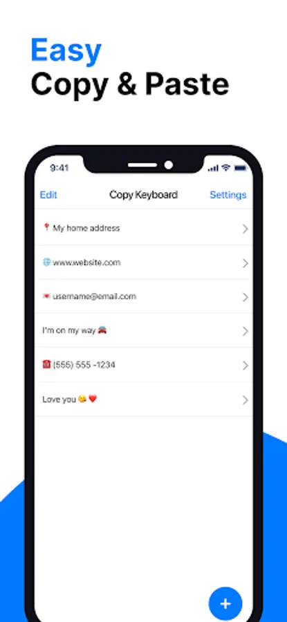 Send song lyrics, email templates, locations, messages, notes or any other with only one tap. Easily share your addresses, phone numbers, emails, emojis, songs, notes and any other just with one tap.