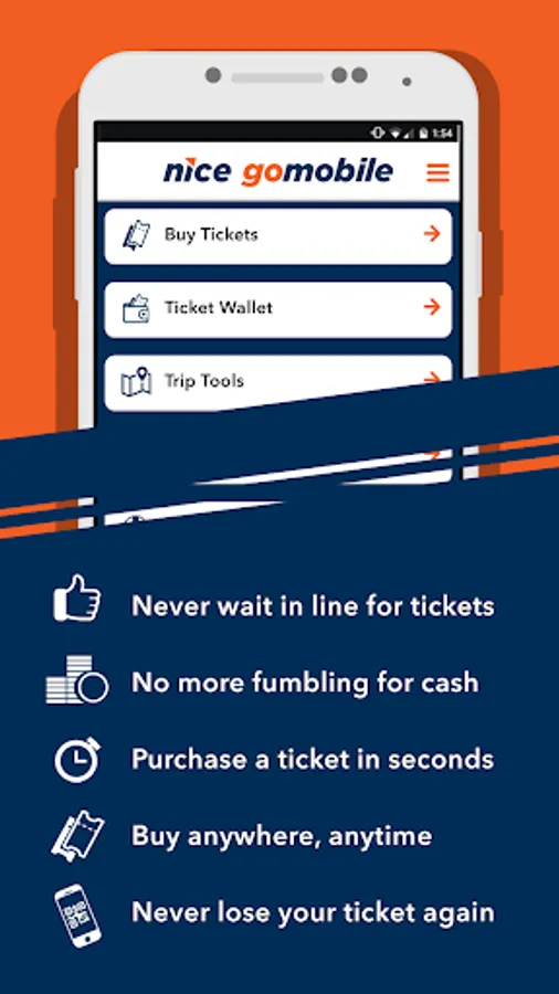 With NICE gomobile, you can buy bus tickets anytime and anywhere. The Official NICE gomobile app is like having a vending machine in your pocket. No need to carry a MetroCard or fumble for change, gomobile will revolutionize your NICE bus experience!