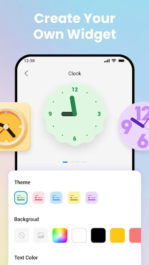 ● Clock widgets - Analog and digital clocks in rich colors and irregular shapes.