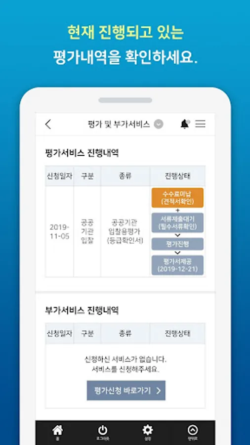 5. 평가진행 확인(접수상태 및 완료예정일 체크)