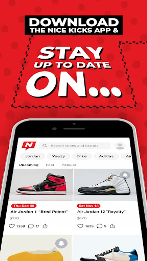 NICE KICKS delivers you the latest info and release dates for the hottest sneakers and upcoming kicks so you can buy the latest shoes with ease. The app brings you news and notifications of surprise drops, future releases, sales, restocks, and raffles.