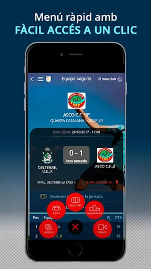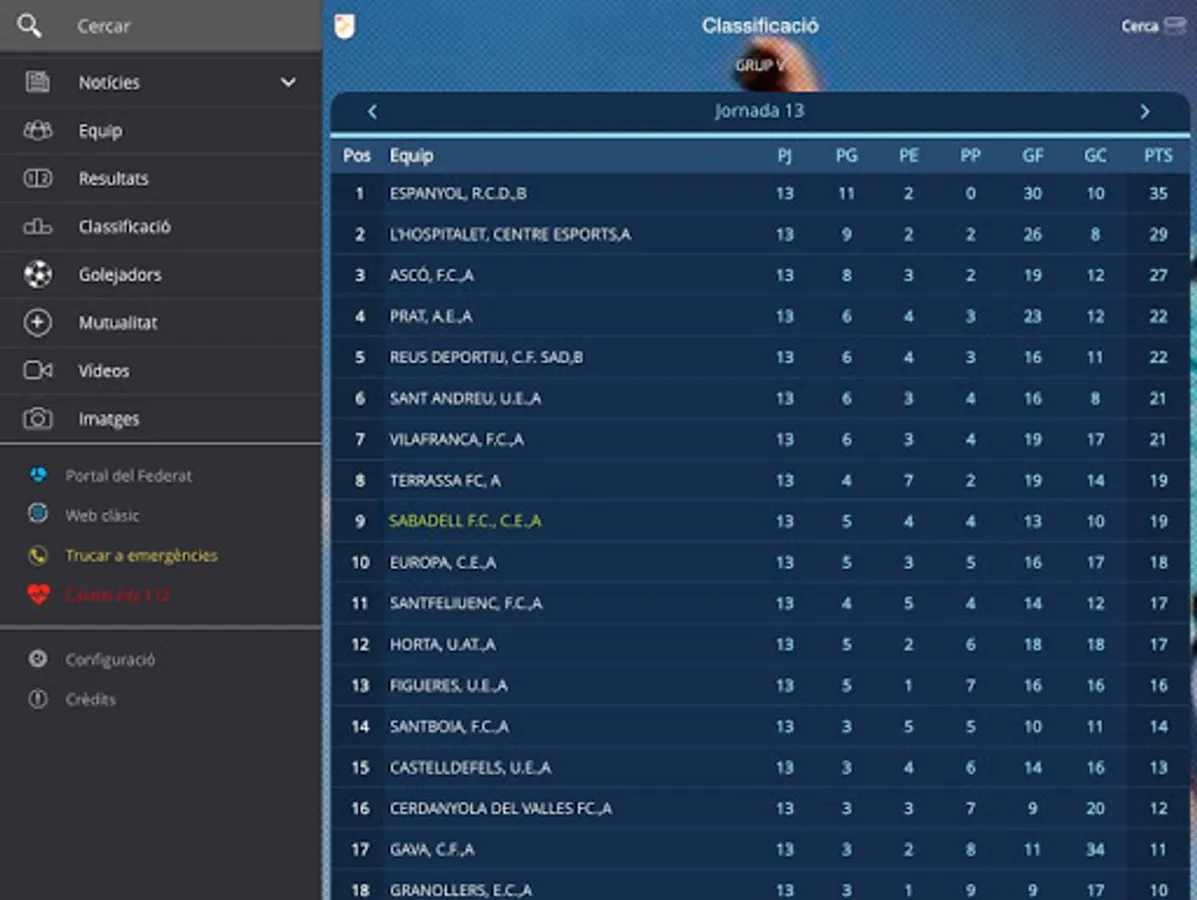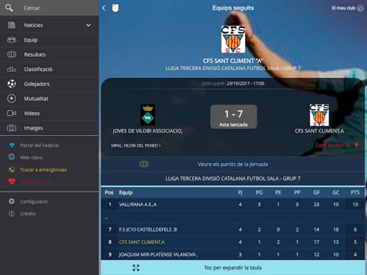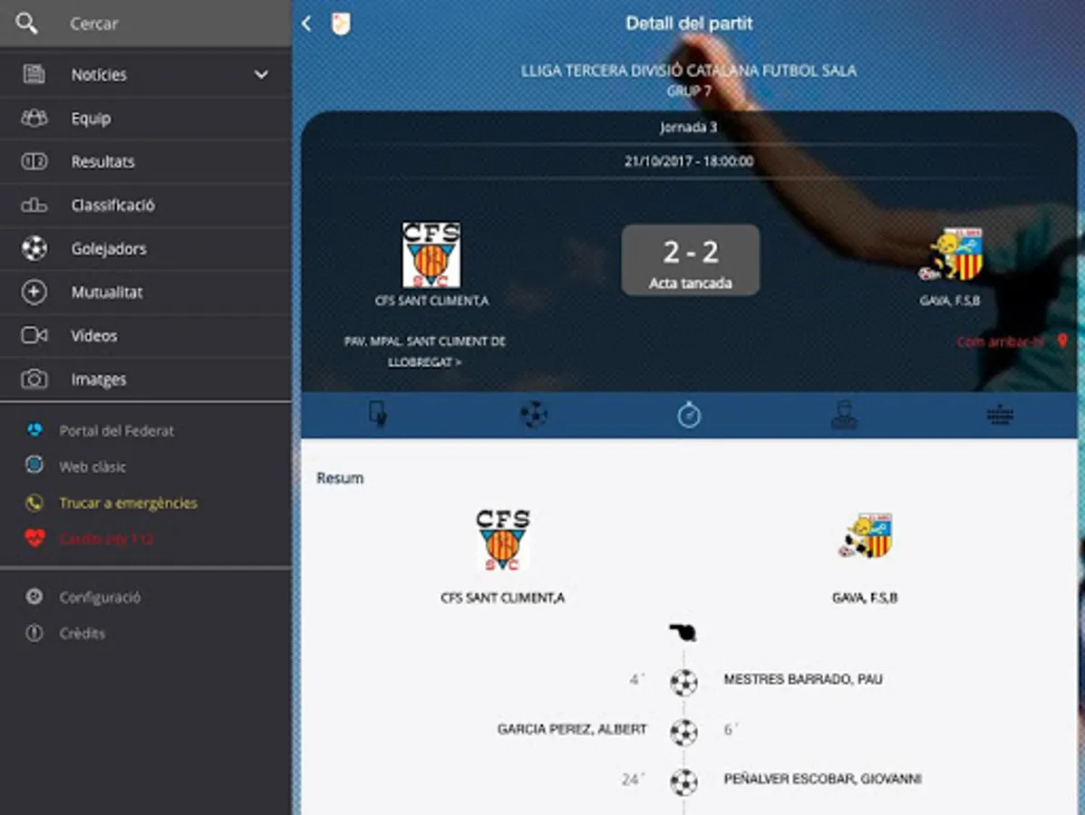 New official implementation of the Catalan Football Federation where you can see all the rankings and results in all categories in real time. Set your line-up receive notifications, resulting in break and final closing act in real time.