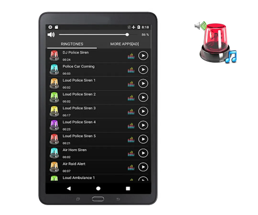 Plenty of super cool police siren sounds and ringtones in this free app!