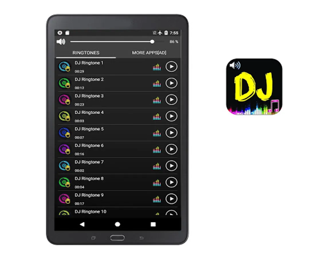 4, Free to set loud DJ ringtones as default ringtones, alarm clock ringtones or SMS notification tones;