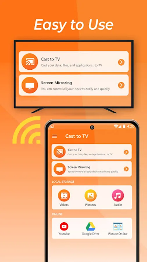 Cast to TV & Web Video Cast is an easy-to-use application that allows you to stream all your favorite content directly from your phone to any smart TV, including Chromecast, Roku, Amazon Fire TV, and Smart TVs from LG, Samsung, and Sony, among others.