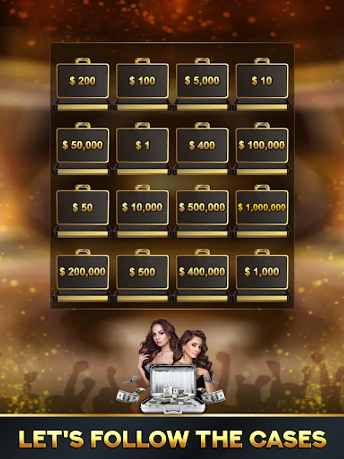 There are 16 briefcases on the board each containing an amount of money between $1 and $1M. Your purpose is to sell your chosen case back to the banker for the greatest amount of money. You'll need nerves of steel and a a bit of luck while making a deal with the Banker.