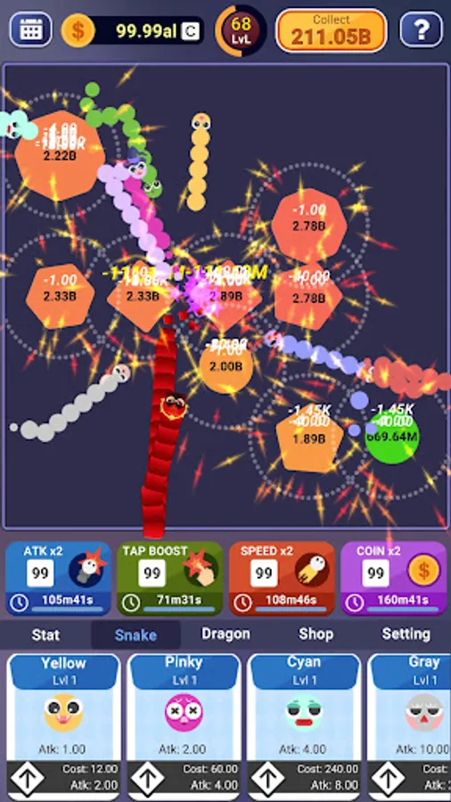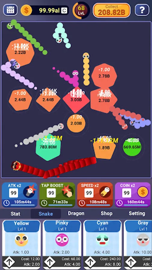 IDLE SNAKES is crafted to provide a seamless and rapid gameplay experience, with controls specifically tailored for all types of mobile devices. The game is more enjoyable and challenging than ever before. You can play at no cost and you can choose to engage in the latest online mode with live events.