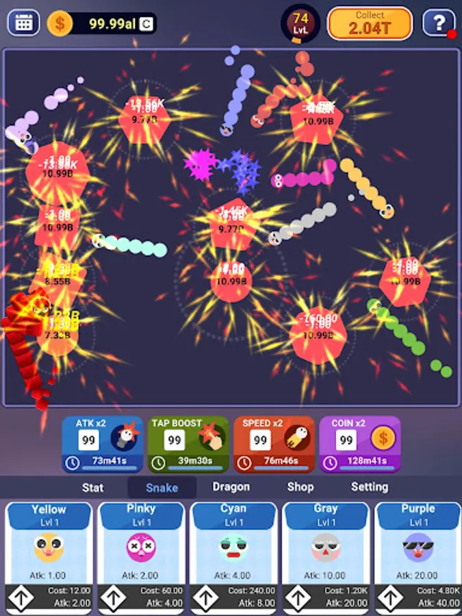 Are you eager to become the ultimate champion of Snakes? Embark on your path with the top-rated game - Idle Snakes! This game offers realistic graphics, engaging sound effects, and unlimited levels, enabling you to reach the highest level of mastery. Don't wait any longer, download Idle Snakes snow and begin your journey toward becoming the ultimate Snakes master!