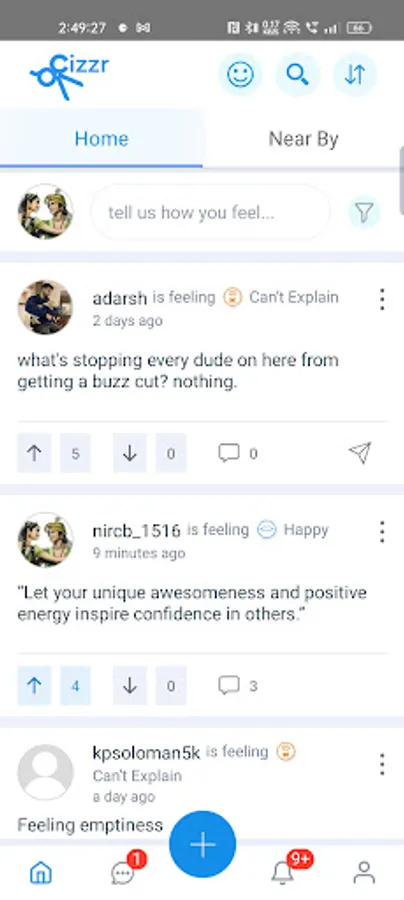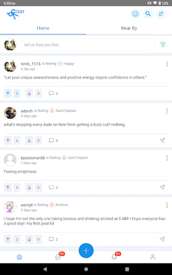 On our app, our new form of social media, we pride ourselves on our no-nonsense “cut the dilemma” attitude. Every post you make on our app is accompanied by an emotion of your choosing, whether it be excitement, sadness or even just pure happiness. You can share about your boss, talk about your parents, or write about your promotion over the office. Then once you post, you can limit who can see your post by location. We do this with our unique location filtering algorithm that’s designed to let each user curate their own feed and build their own community depending on where they live and whom they want to interact with. Additionally, users can choose to either post with their name or even anonymously, and other users can request to message you to shoot you congrats, a shoulder to cry on, or even some advice. Here at Cizzr, we want to help people build their best community to get to their best mental health.