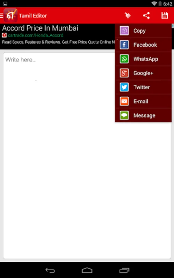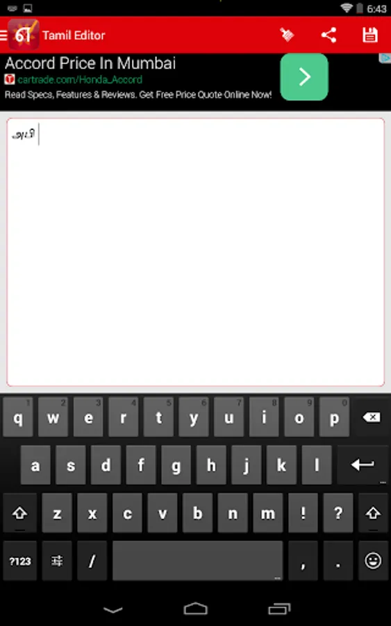 Tamil Editor is a helpful tool to write in Tamil and update your status, prepare notes in Tamil.