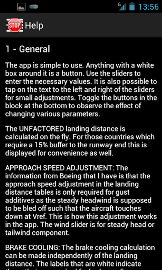 Runway overruns are one of a pilot's worst aviation nightmares. Recent change to some countries regulations require you to ensure you have a 15% buffer between your expected stopping distance based on the QRH figures and the actual runway length. You need a fast and accurate way to confirm that calculation you have done with the tables because it can be complex and you have to interpolate. You can make mistakes but this app, which uses the Boeing 737 QRH figures, is a backup to your manual calculation.