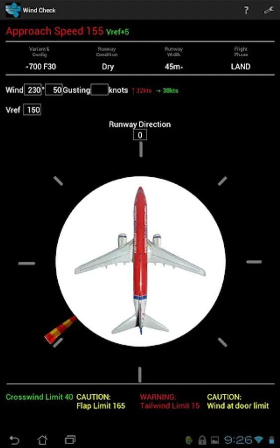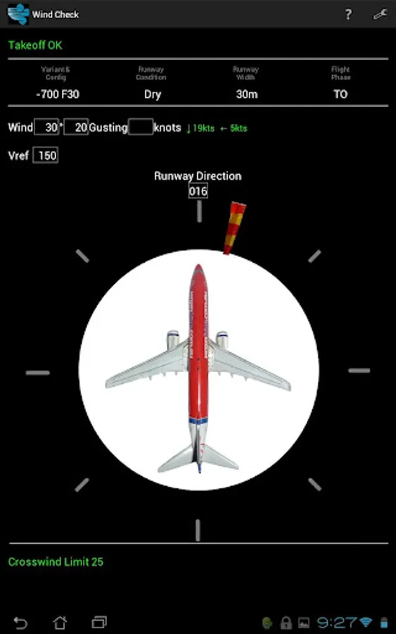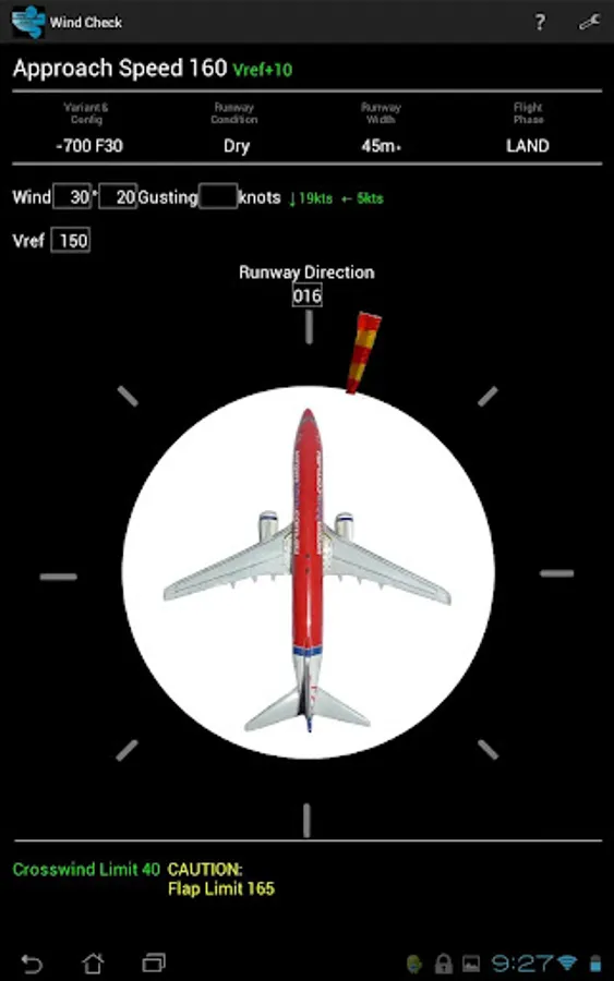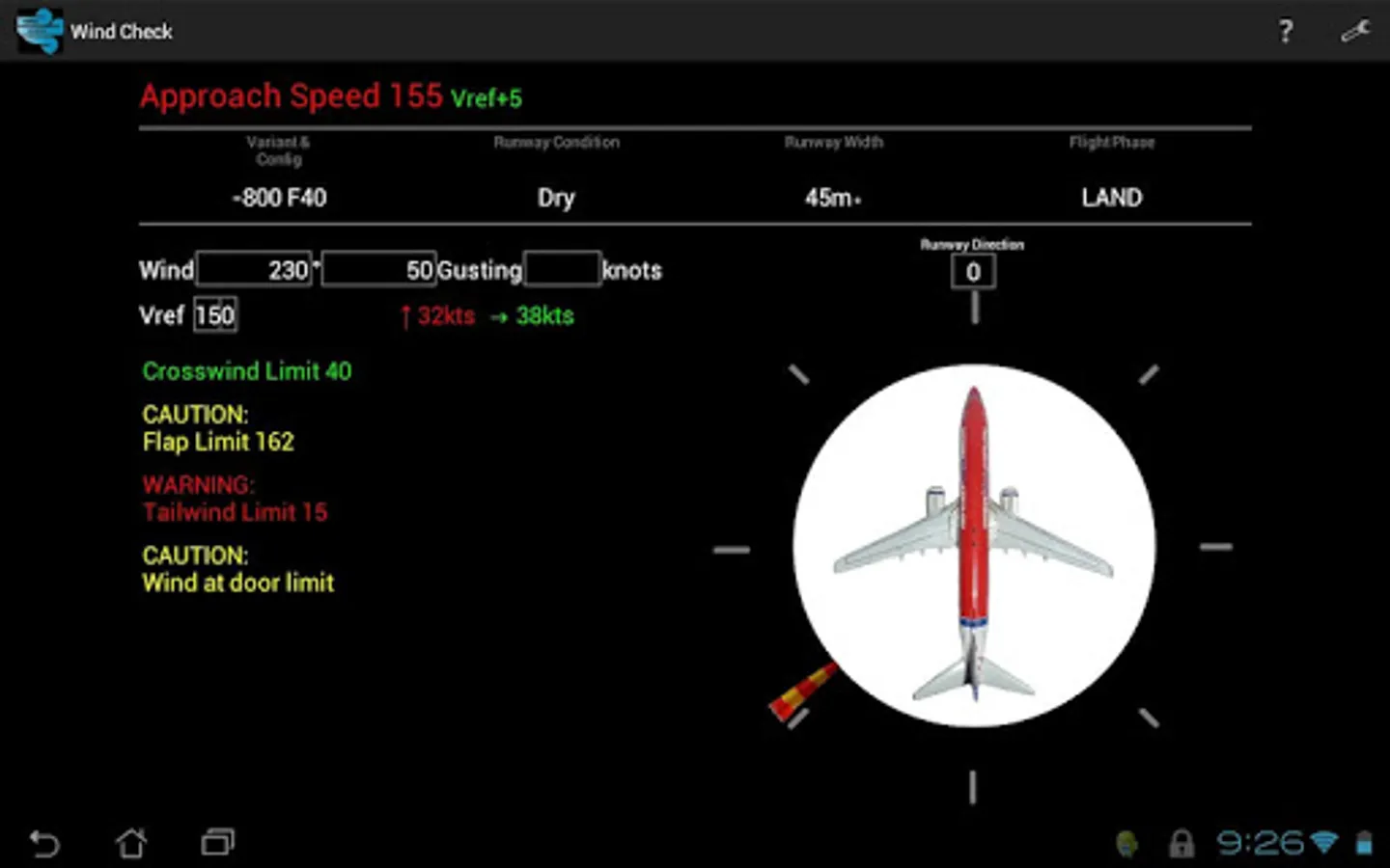 Wind check performs a number of aviation calculations or checks for the Boeing 737 prior to takeoff or landing.