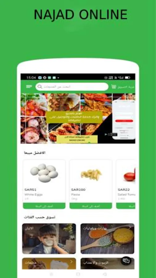 تطبيق نجد نقدم فيه جميع المميزات التي يحتاجها صاحب المطعم او صاحب البقالة او صيدلية او أي متجر يريد ان يضيف الى مبيعاته البيع من خلال الانترنت,