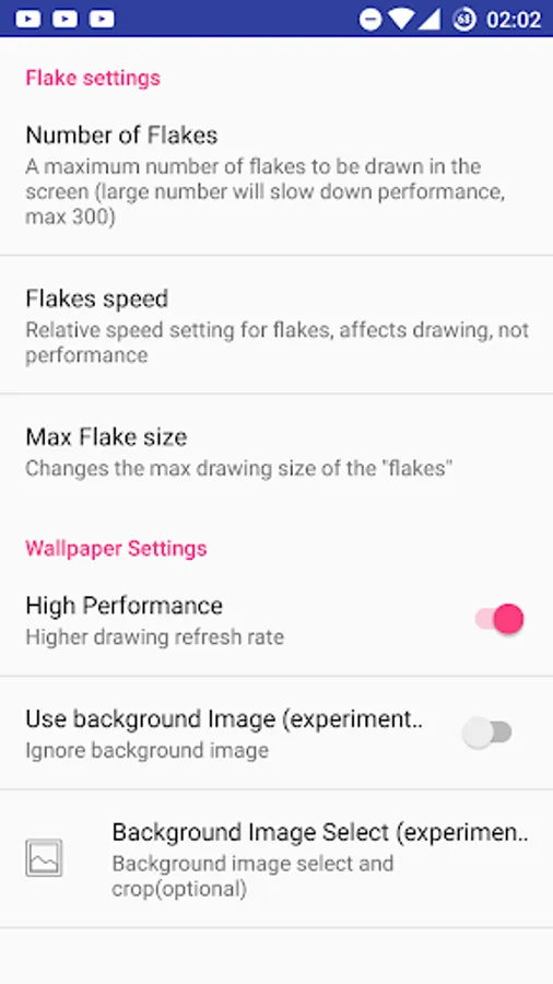 A customized live wallpaper in which it appears to be snowing on your wallpaper background.