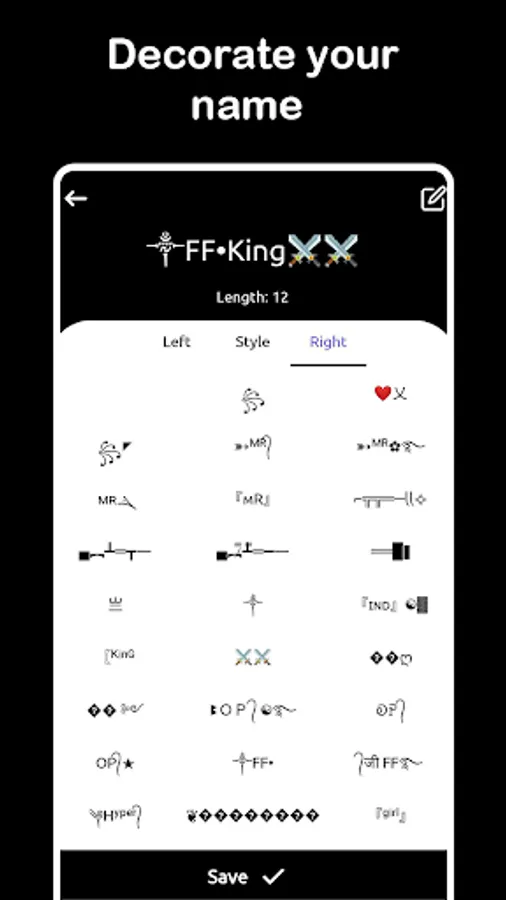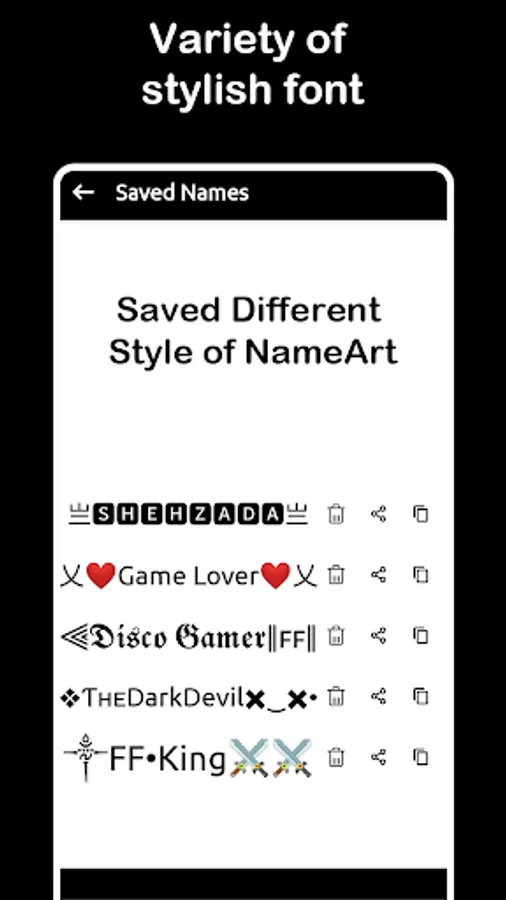 In this app you can create cool nicknames with stylish fonts and symbols. This is free nick name generator app. Also create nickname for your insta bio. This app help you to make your name with stylish font. This stylish font make your name more attractive. You can use this for your game nick name. This is special nick name generator app for gamer.