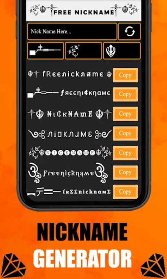Create and personalize your nicknames free using nickname generator. Say goodbye to boring name get a pro names with nickname creator free fancy text. Get to heroic with a cool name create a perfect name with name styles like you usually watch in playing different games or in classic. Change name decorate names with symbols wings with different styles to your free nickname app.
