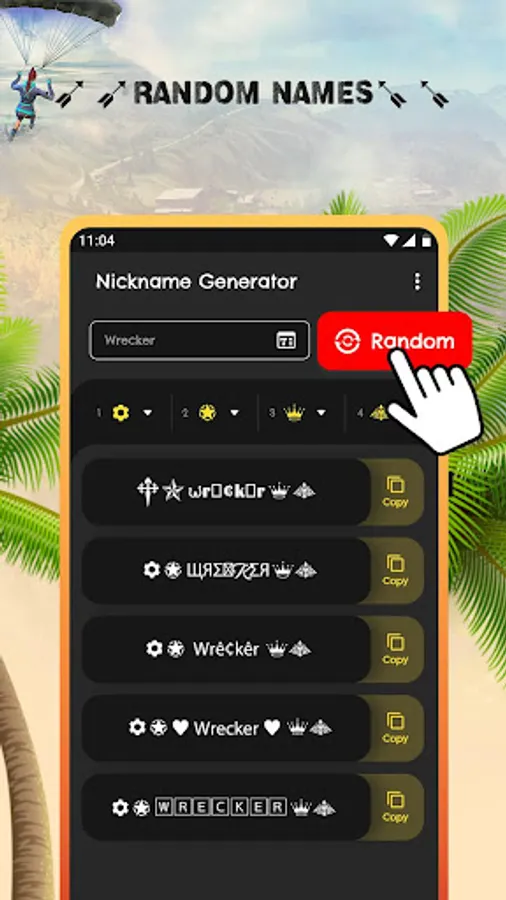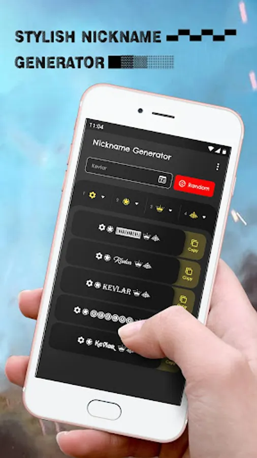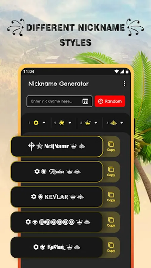 The app will show your nickname with stylish fonts and designs that you can copy to clipboard and use it for the nickname for battle royale games.