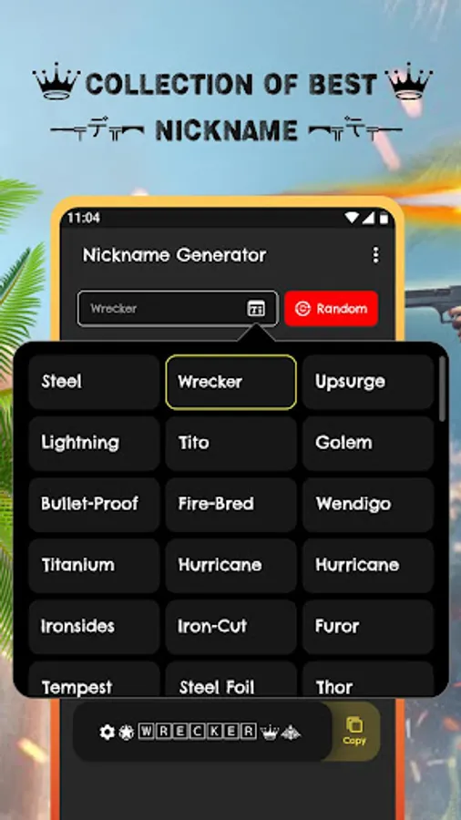 In the app, you can select a nickname of your choice, enter your own nickname, or generate a random nickname for battle royale games.