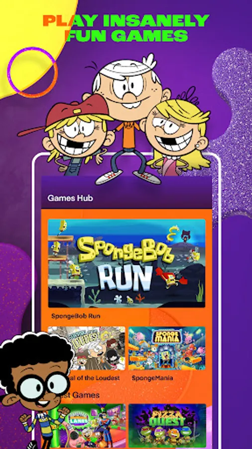 Play FREE, super fun games with your favorite characters - go on a Pizza Quest with the Teenage Mutant Ninja Turtles, play hoops with SpongeBob and Patrick, see if you can survive a round of Battle of the Loudest with the Loud Siblings, and so much more!