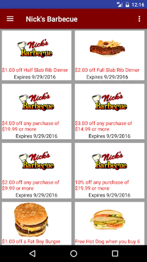 With the official Nick's Barbecue app you can receive exclusive coupons, view our different locations, and view our entire menu right from you phone.