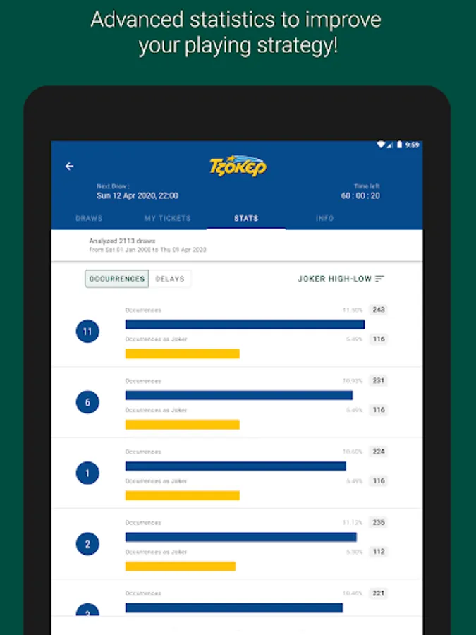 Check out advanced statistics for past lottery draws and imrove your playing strategy!