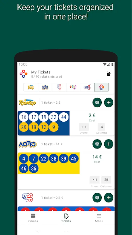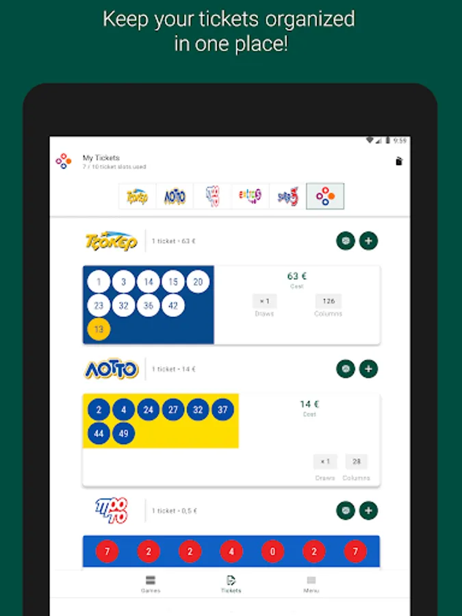 Create your tickets inside the app and have them organized by game. This way you can always display them in case yout want to actually play them in an OPAP spot!