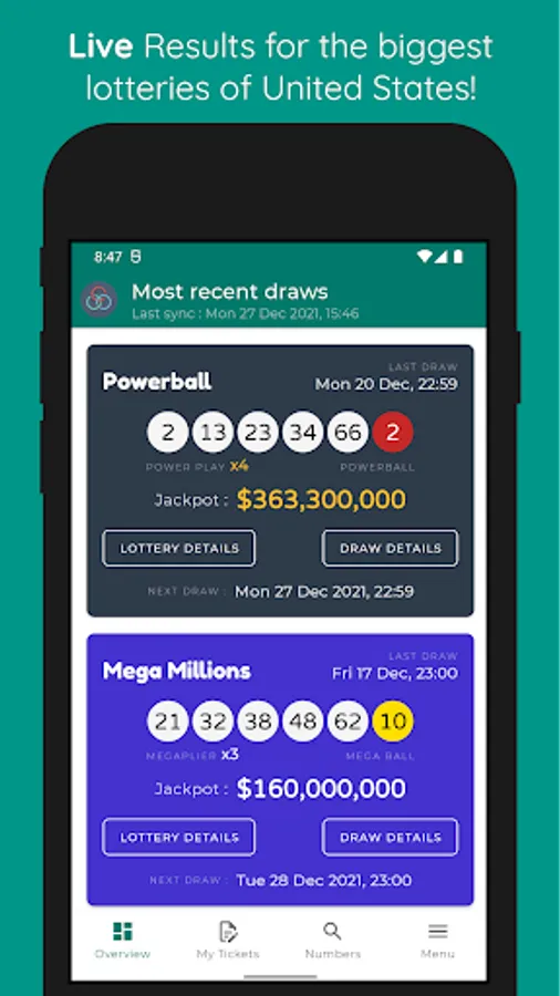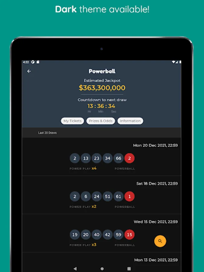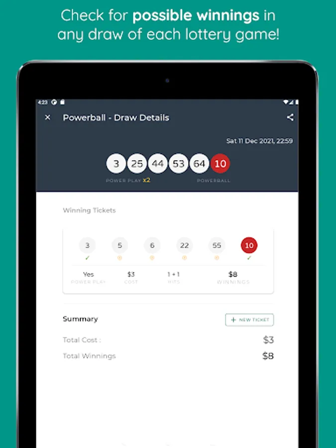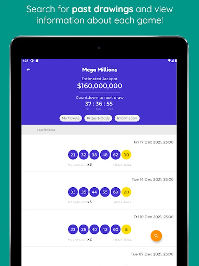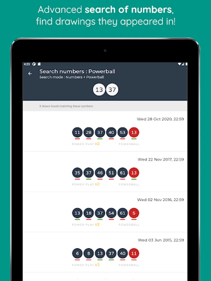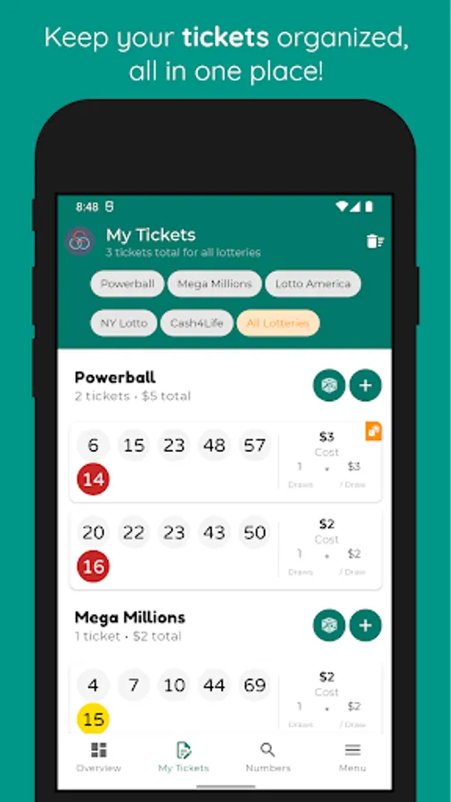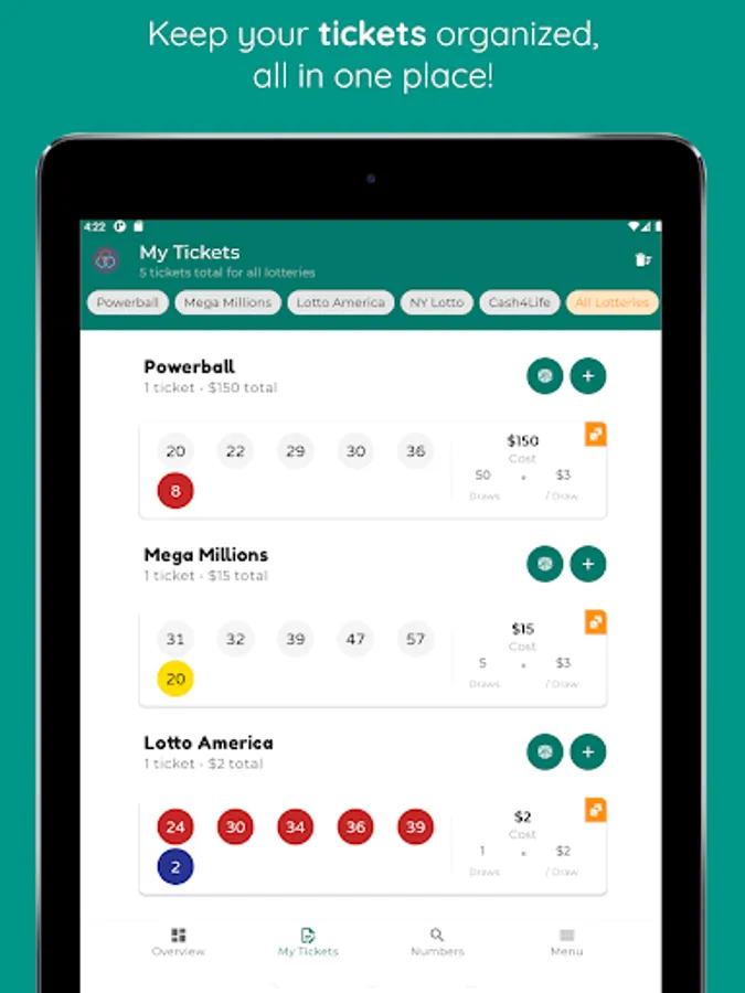 - Create virtual tickets to keep them organized and check for possible winnings in an past drawing!