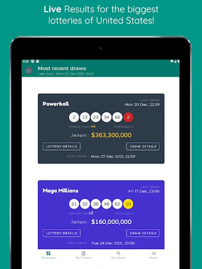 The lotteries With this app you can test your playing strategy, improve and increase your winnings! Always up to date with the actual live draws so that you can watch them from anywhere!